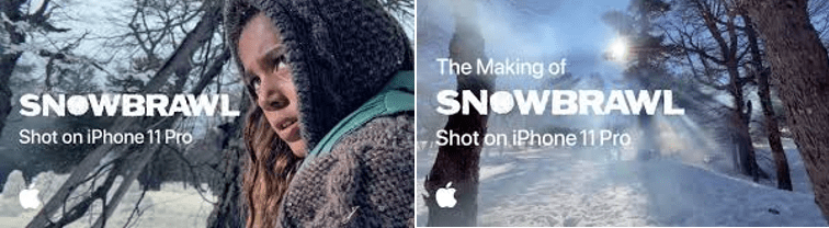 When the new iPhone 11 was being launched Apple further added to the campaign by shooting a number of adds only using the iPhone 11 Pro. They also realised a short filmed titled snow brawl. As well realising a behind the scenes video showing off the features of the iPhone 11 pro and how its features were used to capture the film.